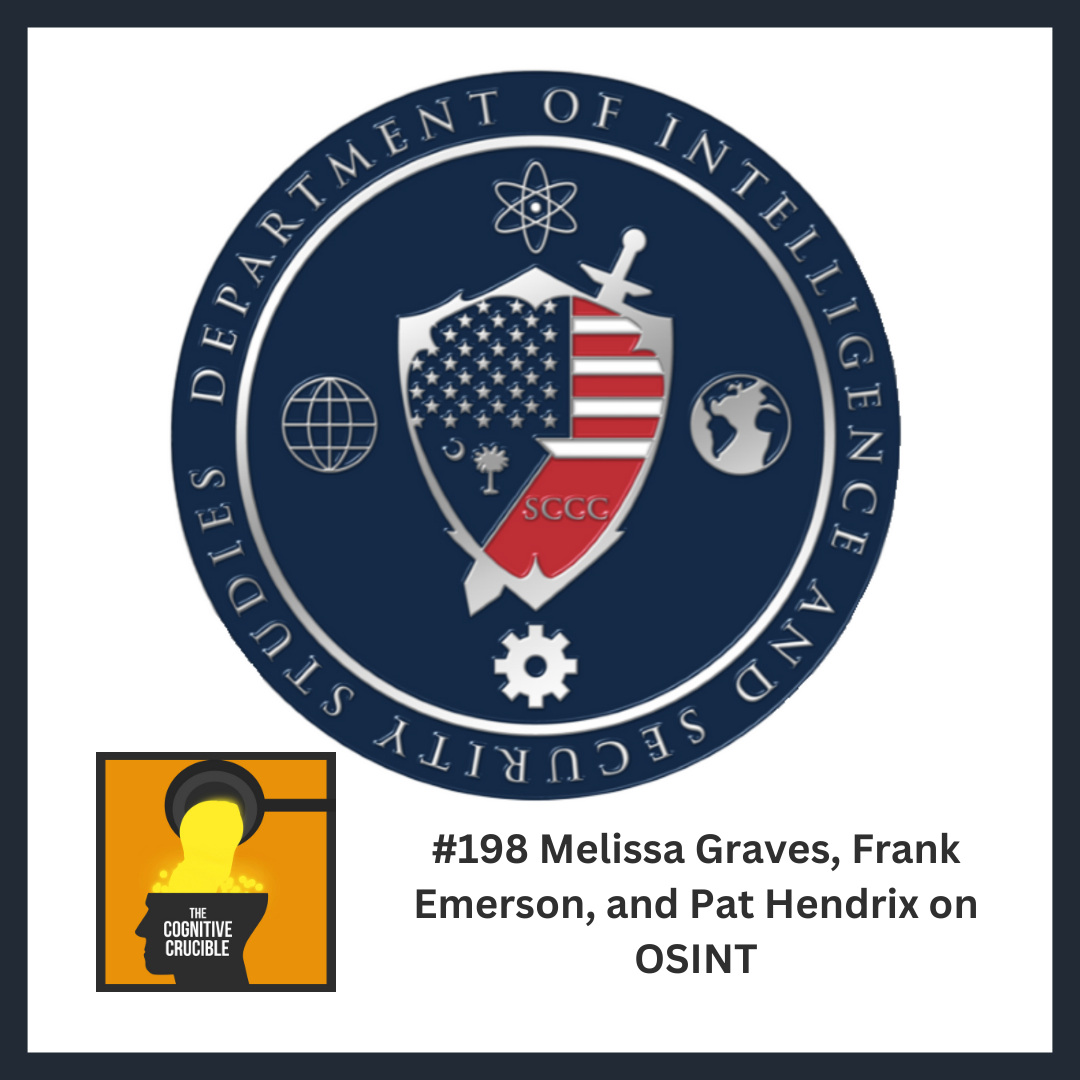 During this episode, Melissa Graves, Frank Emerson, and Pat Hendrix discuss the history of Open Source Intelligence (OSINT), how publicly available information (PAI) is being analyzed by students in the Department of Intelligence and Security Studies at The Citadel, and The Citadel’s Open Source Intelligence Conference which will be held October 23-25, 2024.